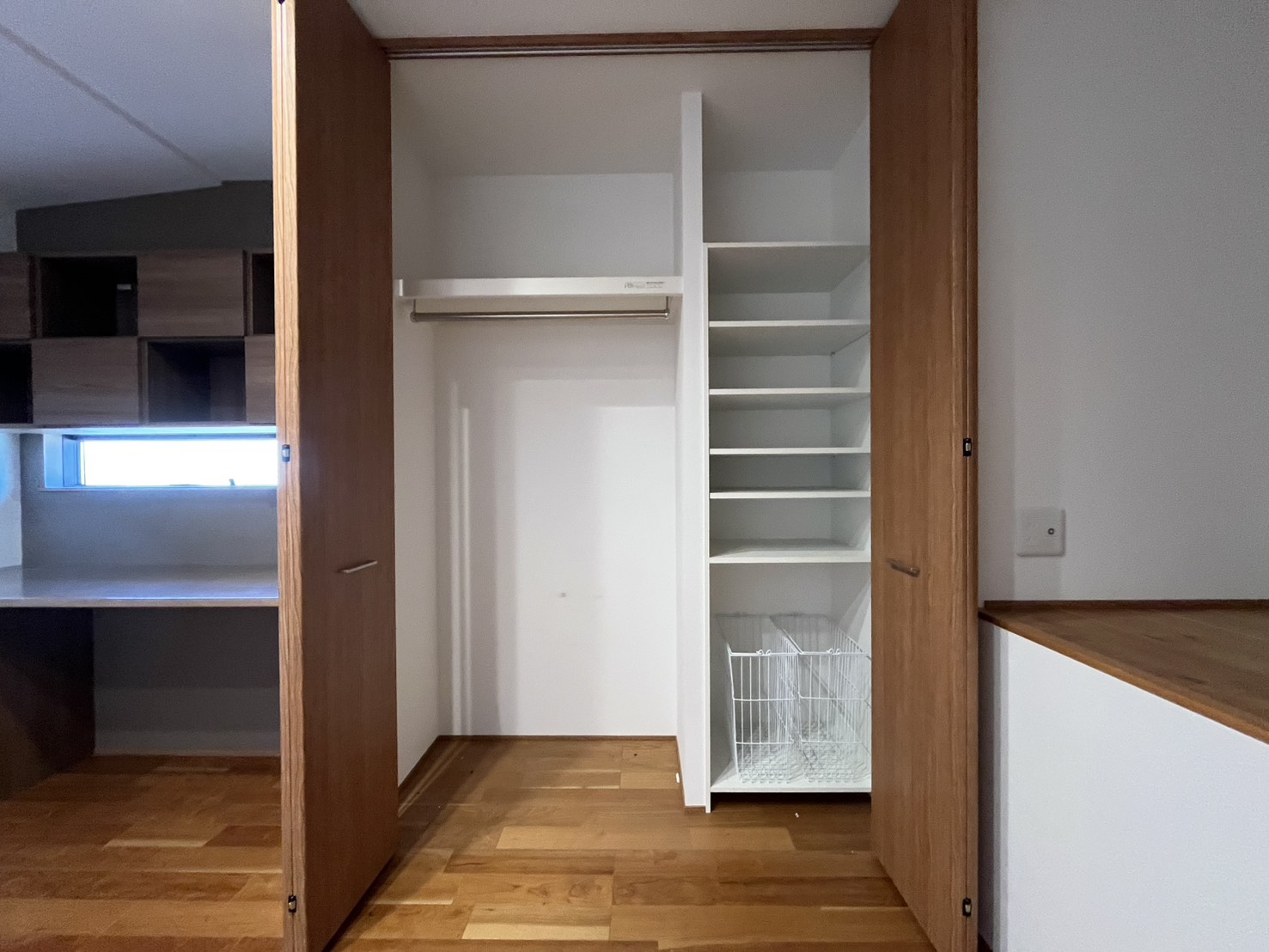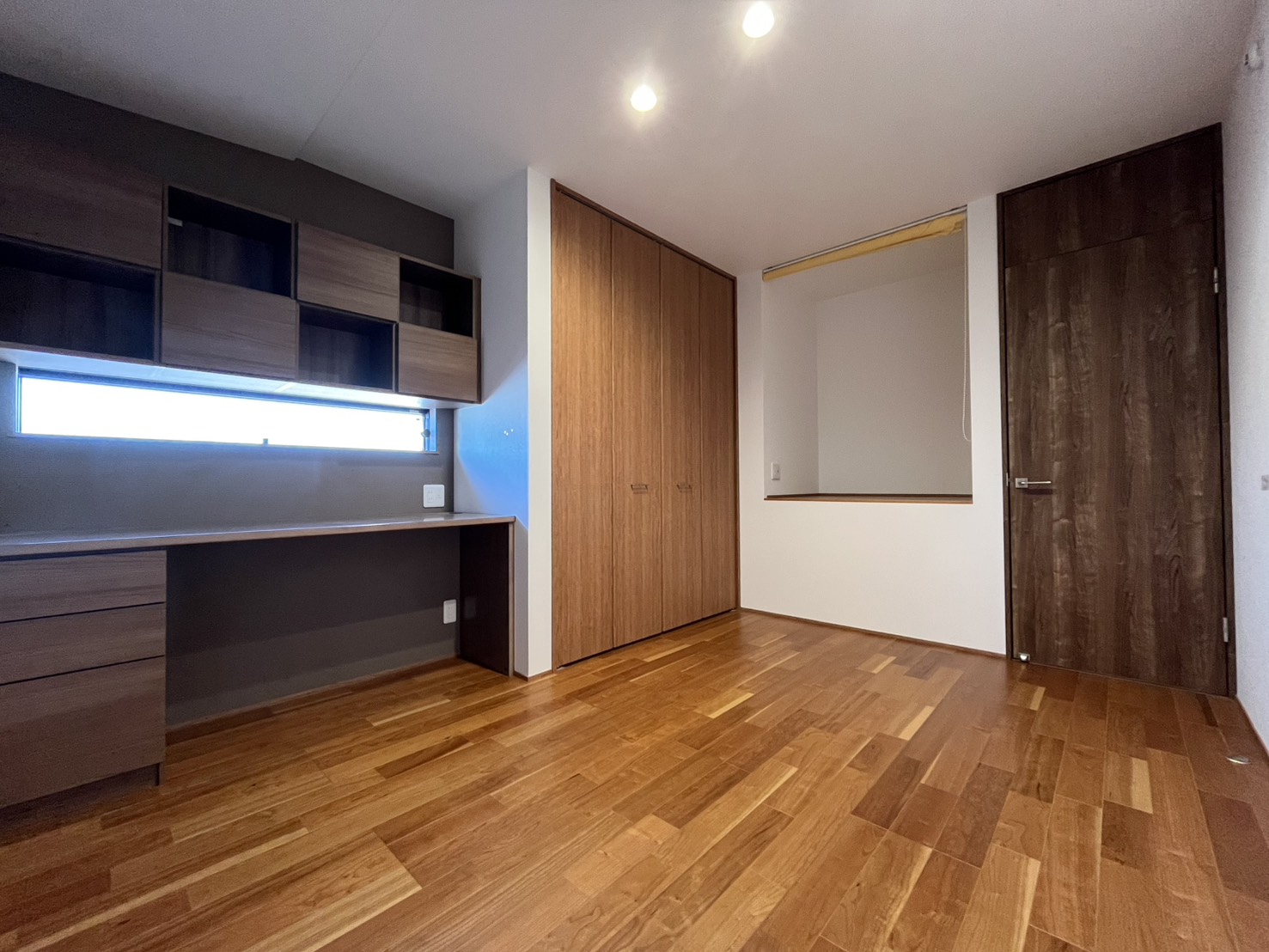 ウッド調に統一されたモダンな室内、